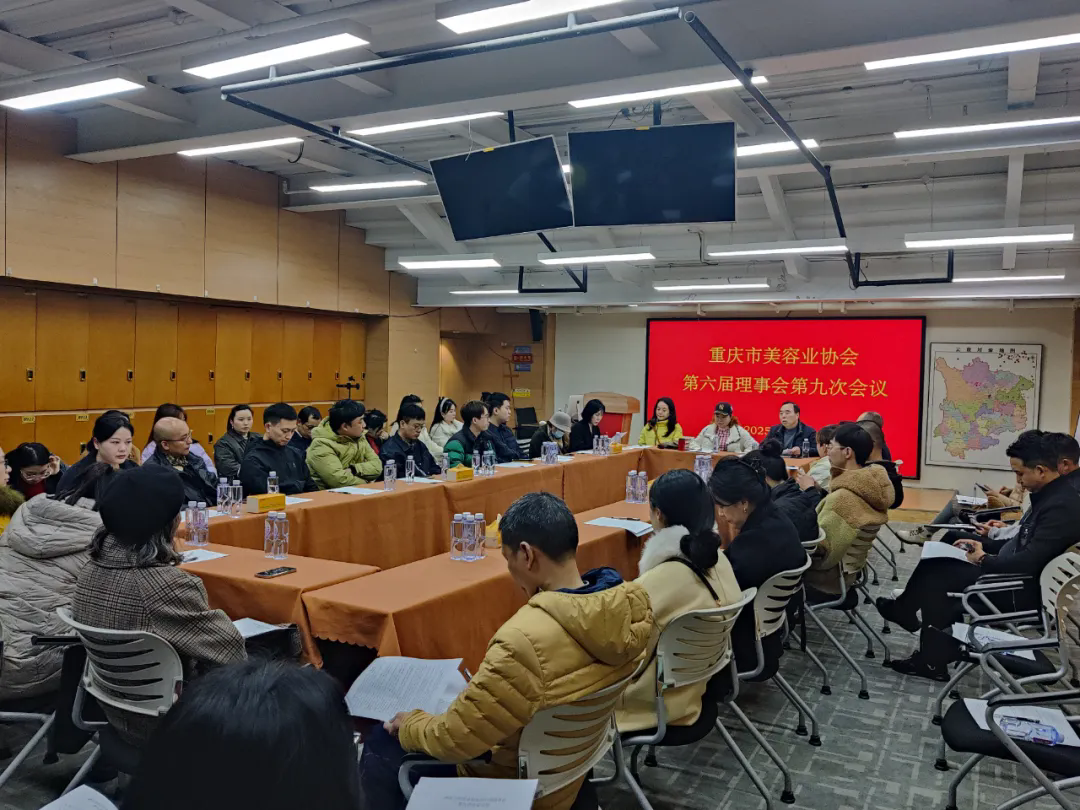2025年12月26日下午2点,重庆市美容业协会在兰平企业管理咨询重庆有限公司会议室召开“重庆市美容业协会第六届理事会第九次会议”。会议由协会会长兰萍主持。